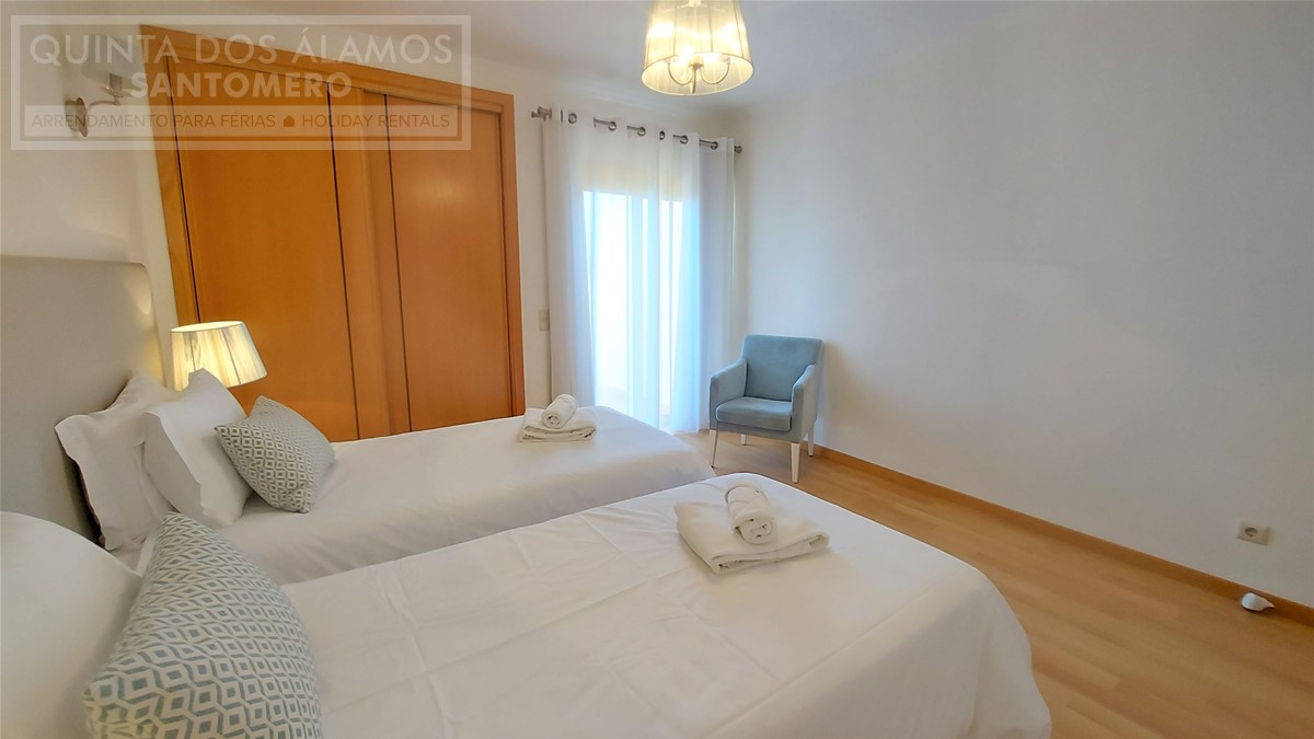 | Alojamento | Este/a Moradia em banda com 2 piso(s) em Albufeira (Sesmarias) é composto/a por 2 quartos (1 x casal (ensuite) e 1 x 2 individuais + sofá cama), 3 casas-de-banhos, com ar condicionado (Em toda a casa). |